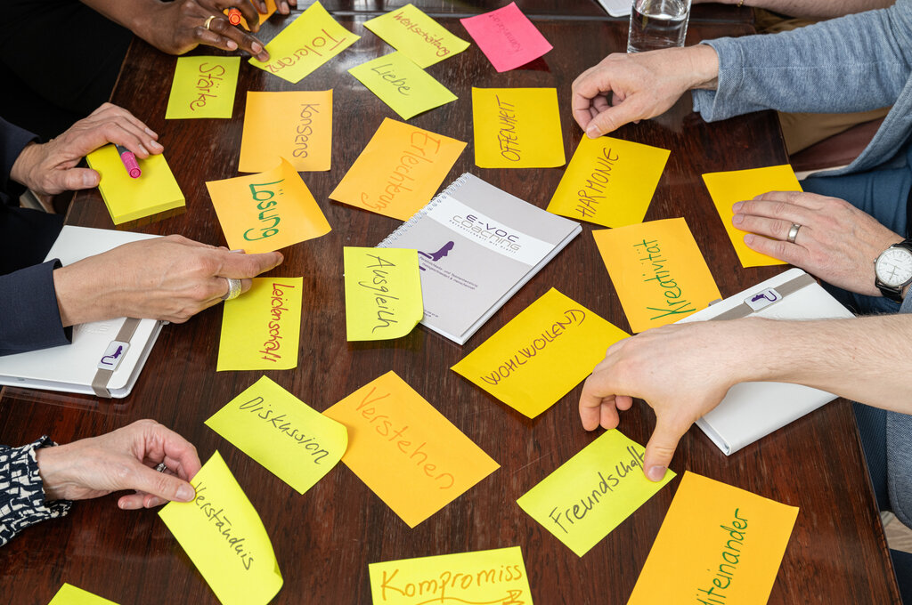 Das Kommunikations- und Führungstraining bei e-voc coaching stellt konkrete, praxisnahe Werkzeuge zur Verfügung um das neue Verhalten und die dafür notwendige innere Haltung zu üben. Dank Übung und tagtäglicher Umsetzung verwandelt sich vorab fremd empfundene Technik zur neuen Gewohnheit. Neues Verhalten, das die Veränderung stützt, wird so zur Gewohnheit und entpuppt sich als Teil der neuen Unternehmenskultur.